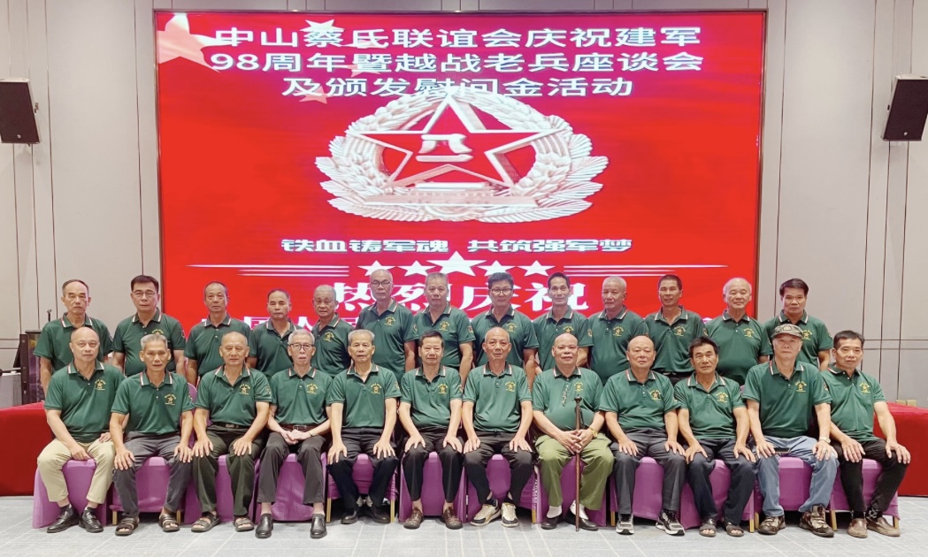 7月31号,值此中国人民解放军建军98周年前夕,澳门衛國建澳联谊会会长越战老兵蔡明添,携带顾问李云,理事梁华金和会员蔡刚强,蔡刚威,蔡松生,蔡松亮,蔡镜明,等会员回家乡与当地蔡氏宗亲们共庆八一建军节聚会,活动中老兵与宗亲们回顾历史畅谈家国,分享当年怎样保家卫家,军人是国家安全的定海神针是维持社会安宁的忠实守护者,寄语新一代珍惜和平生活来之不易。在这次活动中畅谈了爱国教育和国防发展,回顾了热血的青春,使老战友更响往美好的未来。