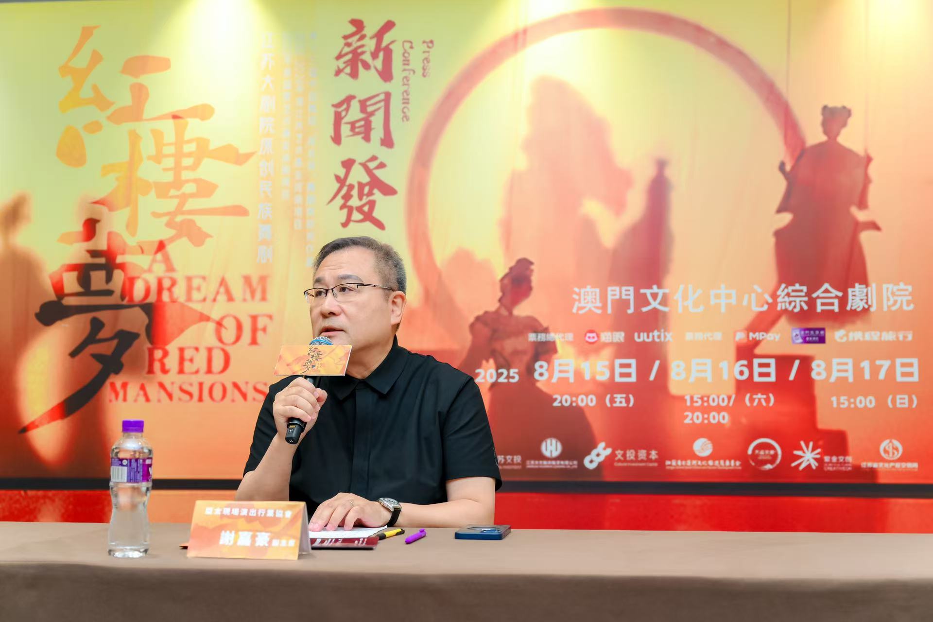 原創民族舞劇《紅樓夢》劇團今(11)日下午4時在澳門漁人碼頭宴會廳召開新聞發布會,廣州炬盛國際文化藝術有限公司行政總裁馬修,亞太現場演出行業協會副主席、澳門寶輝娛樂有限公司董事長謝嘉豪,江蘇大劇院副總經理、民族舞劇《紅樓夢》監制李斯思以及劇團一眾主演出席並介紹舞劇內容,全國人大代表何敬麟、中國文聯全國委員會委員、澳門文化界聯合總會理事長李自松、立法議員顏奕恒、燚光年娛樂CEO郭婧、棋人娛樂製作有限公司行政總裁謝復生等嘉賓出席。