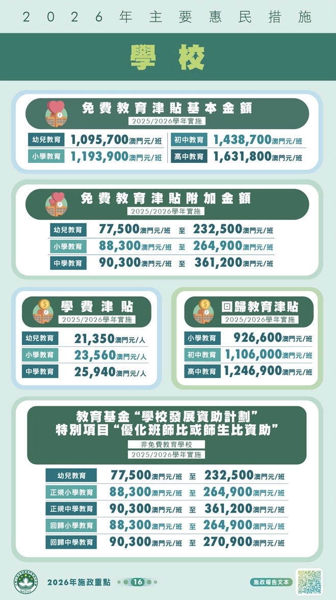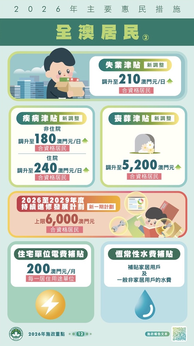 澳門【2026年施政報告】:主要惠民措施(圖文包)