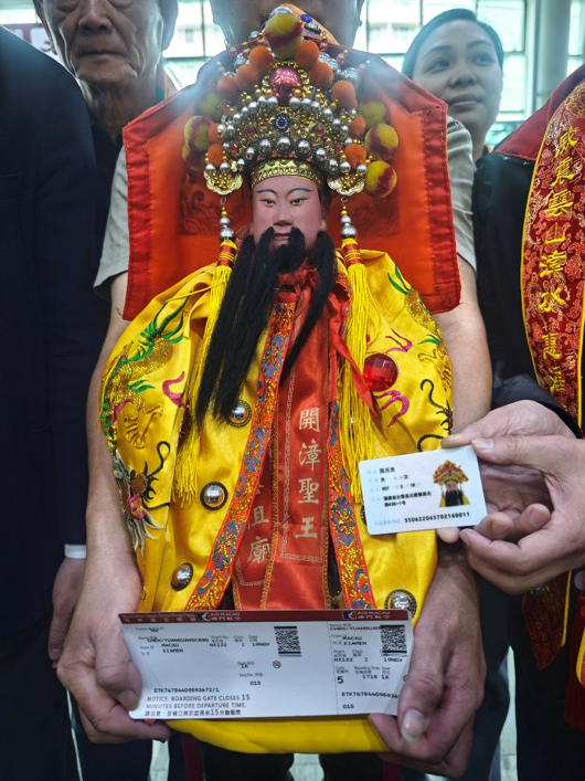 此次赴澳巡安旨在护佑澳门居民身心康泰、社会安宁,圣王金身此前曾四度受邀赴台巡安,亦曾远赴新加坡参加首届国际开漳圣王文化节,此尊圣王像从福建云霄威惠祖庙恭请到澳门,是全球唯一有身份证的开漳圣王金身,从取得身份证以来是首次实名购票乘机巡安,跨越海峡与海外的千年信仰,将祝福与文化情缘延续传递。