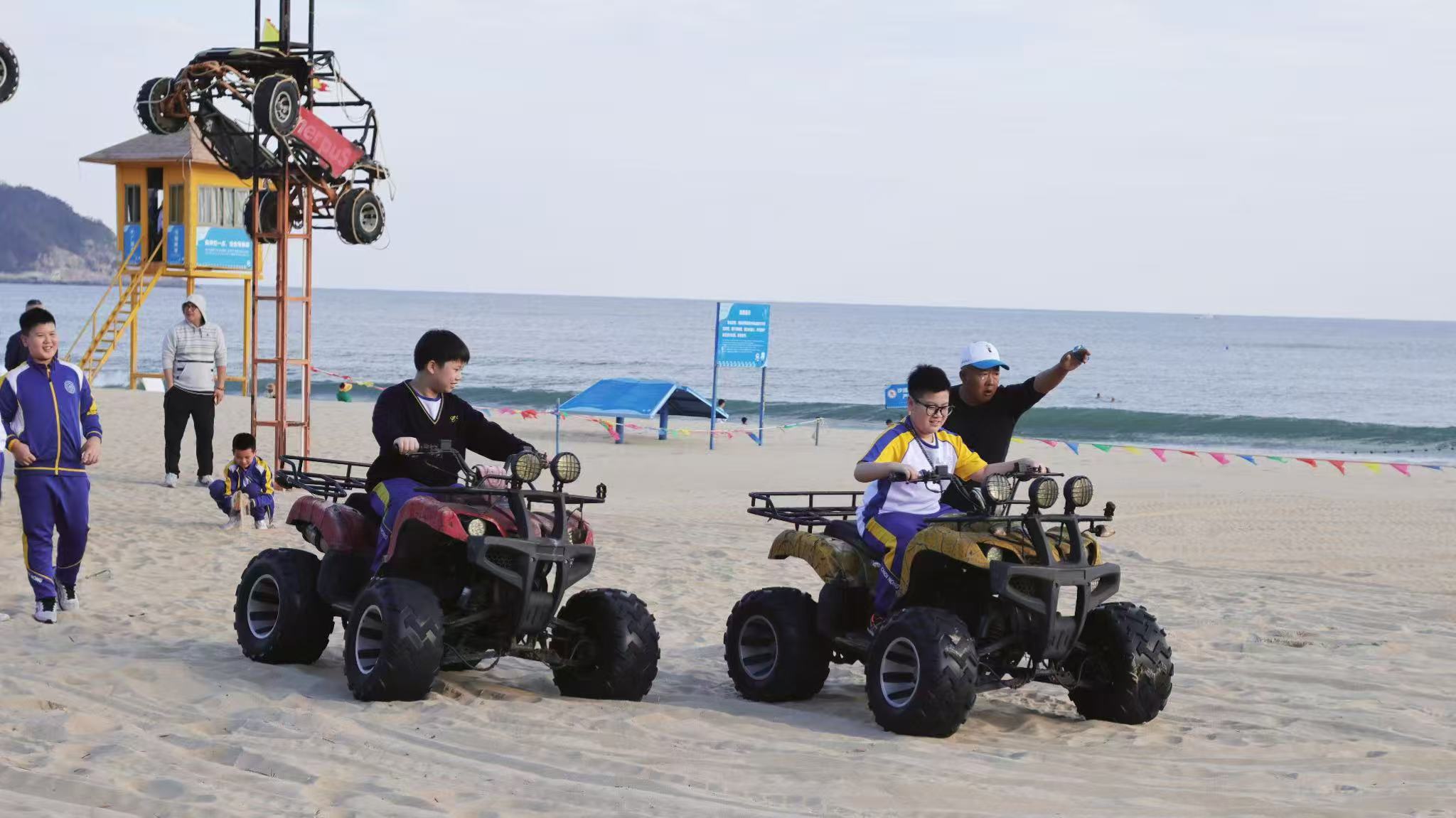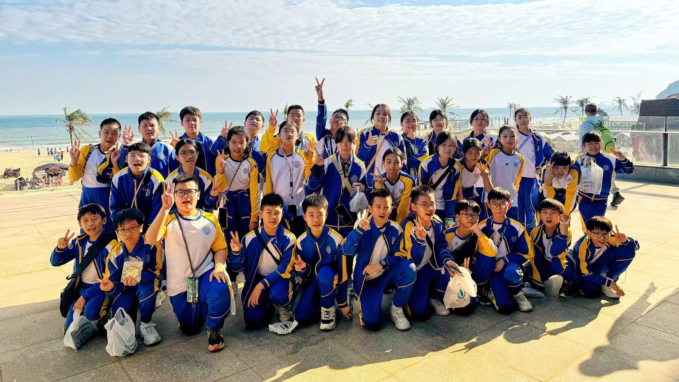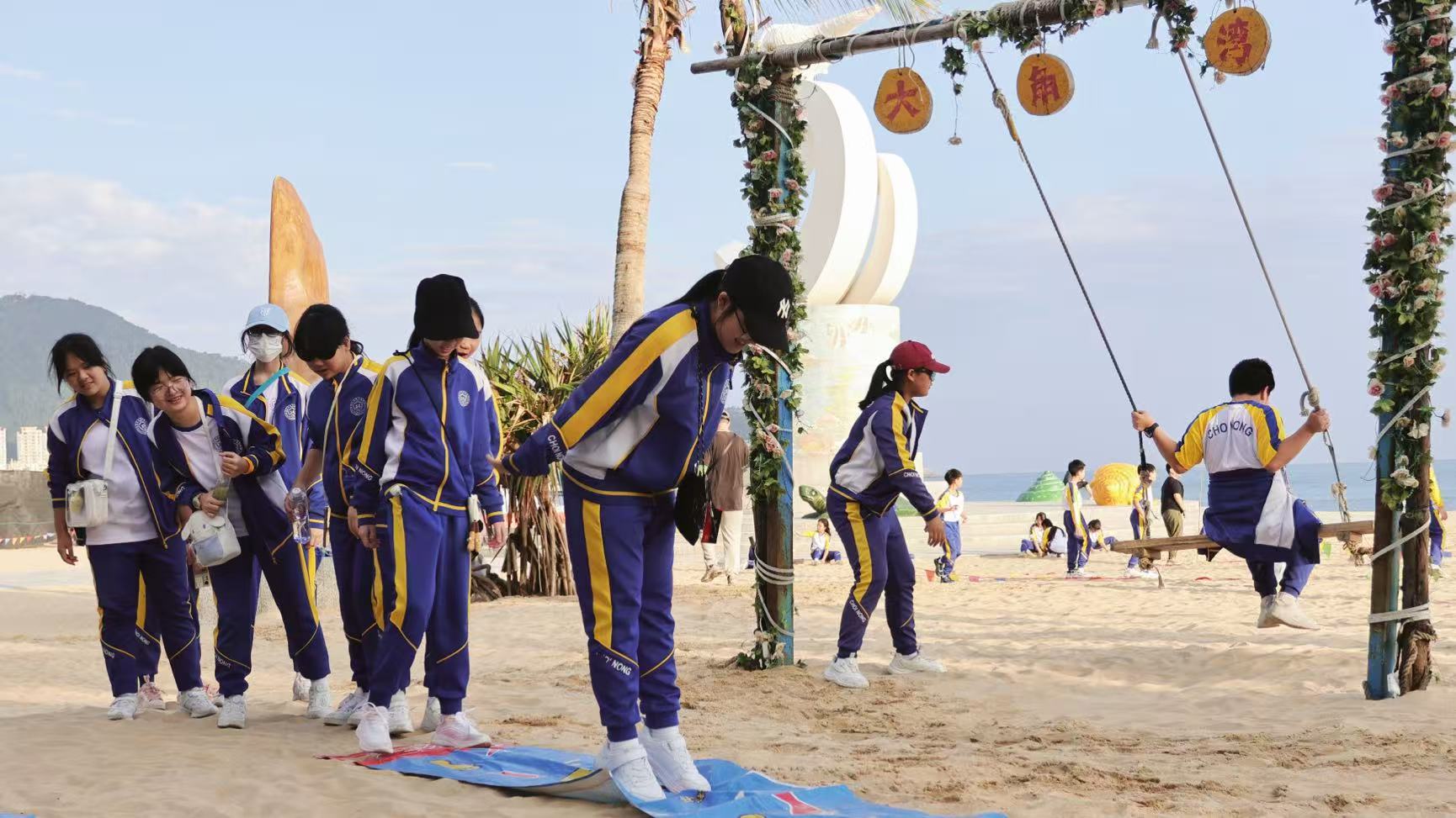 隨後,師生們前往海陵島大角灣海上絲綢之路旅遊區。這裏碧海藍天、銀灘白沙,融入了濃厚的海絲文化元素。漫步沙灘,海風輕拂,同學們感受海洋的壯美,通過景區內的海絲文化標識理解海洋對陽江乃至中國對外交流的重要意義。部分同學體驗沙灘趣味活動,在歡聲笑語中親近自然,加深對“海洋強國”理念的直觀認知。