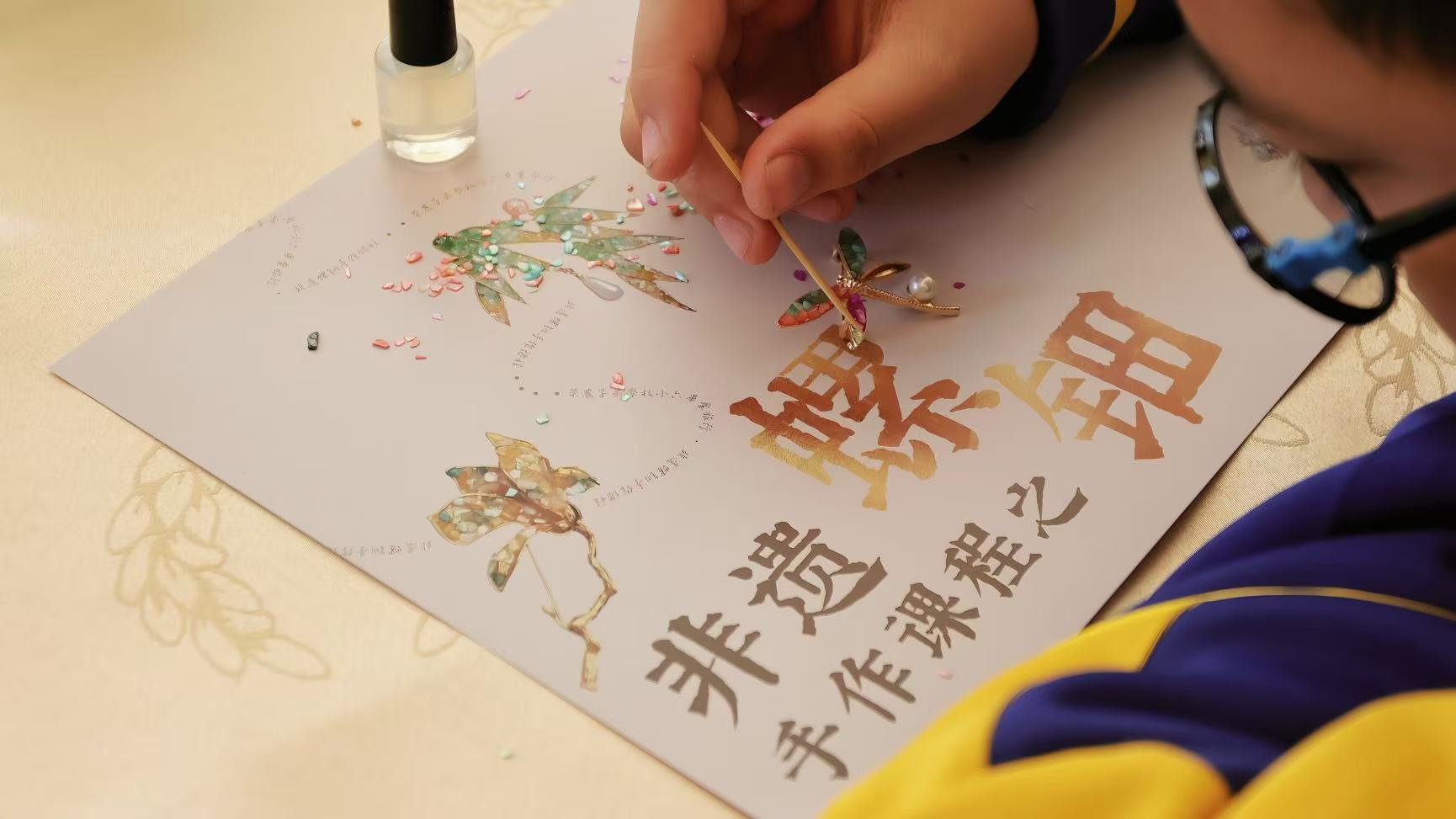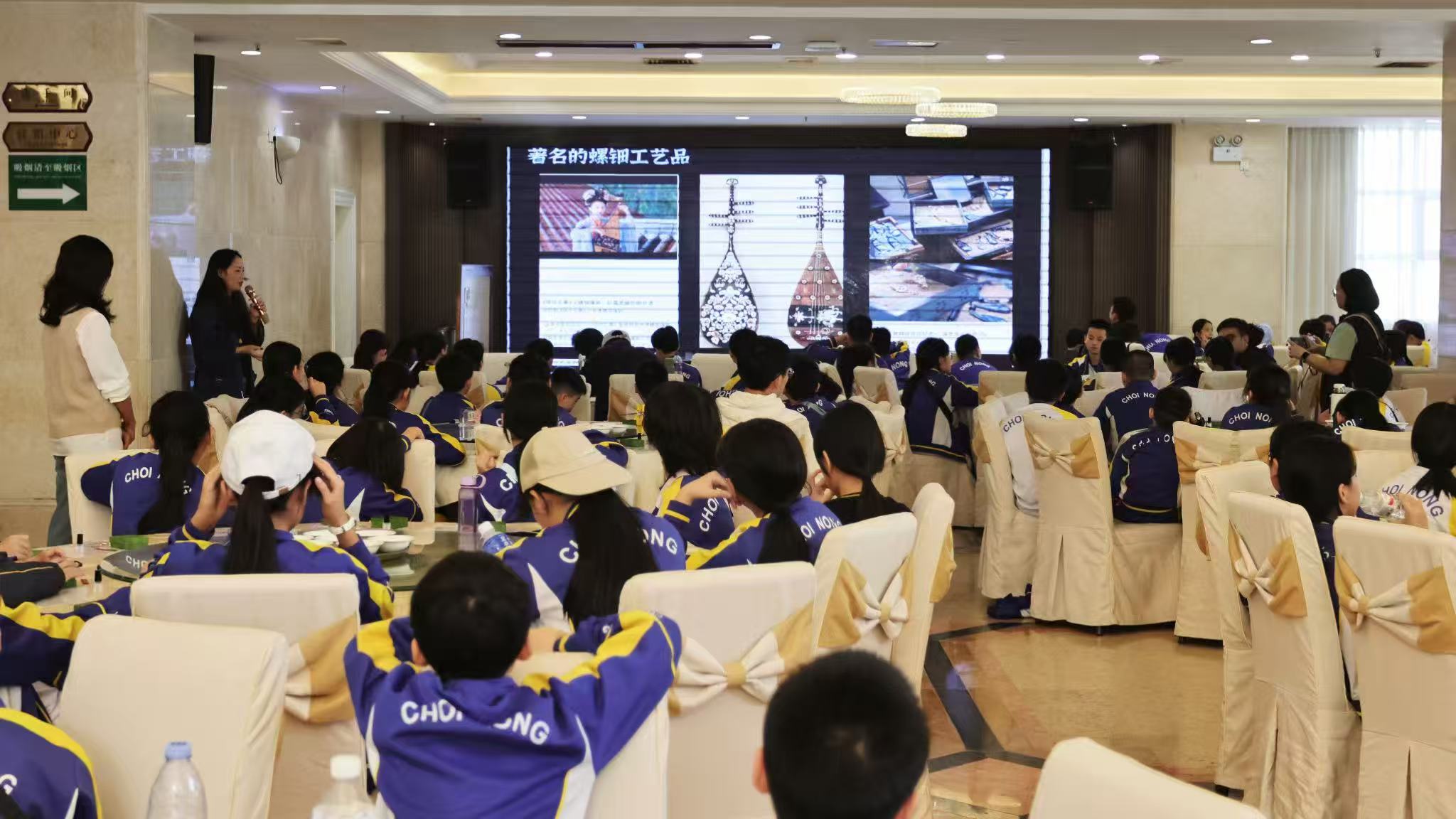 15日,研學活動聚焦“非遺傳承與本土產業”。上午,同學們參與了非遺螺鈿手作課程。螺鈿工藝作為中國傳統漆器裝飾技法,以貝殼的天然色彩與紋理為原料,經打磨、切割、鑲嵌等多道工序打造精美工藝品。課程中,老師講解了螺鈿工藝的歷史淵源與製作原理,並指導同學們動手實踐。從挑選貝殼片到精細切割,再到小心翼翼鑲嵌到基底上,每一步都考驗耐心與細心。最終,當一件件凝聚心血的螺鈿小擺件、小書簽完成時,同學們臉上洋溢著成就感。