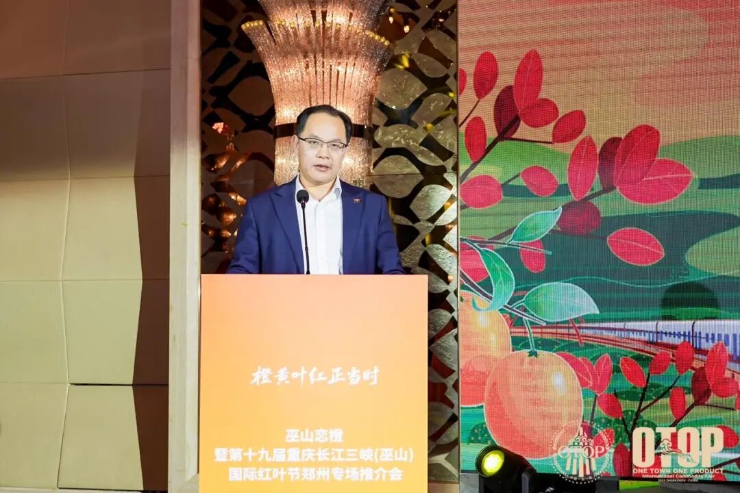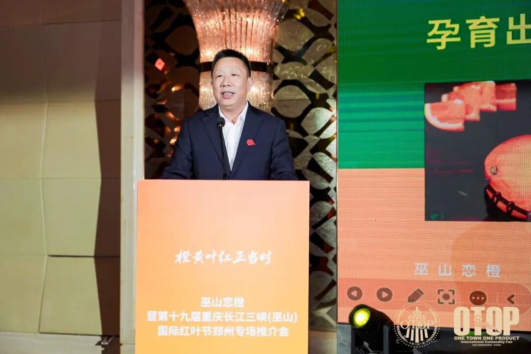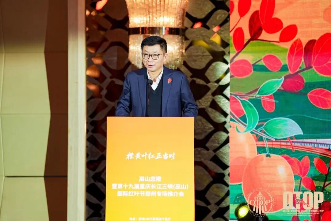 巫山縣委書記曹邦興在致辭中邀請嘉賓體驗巫山紅葉、戀橙、烤魚等特色資源,誠邀客商共用“豫見巫山、橙結良緣”的市場機遇。