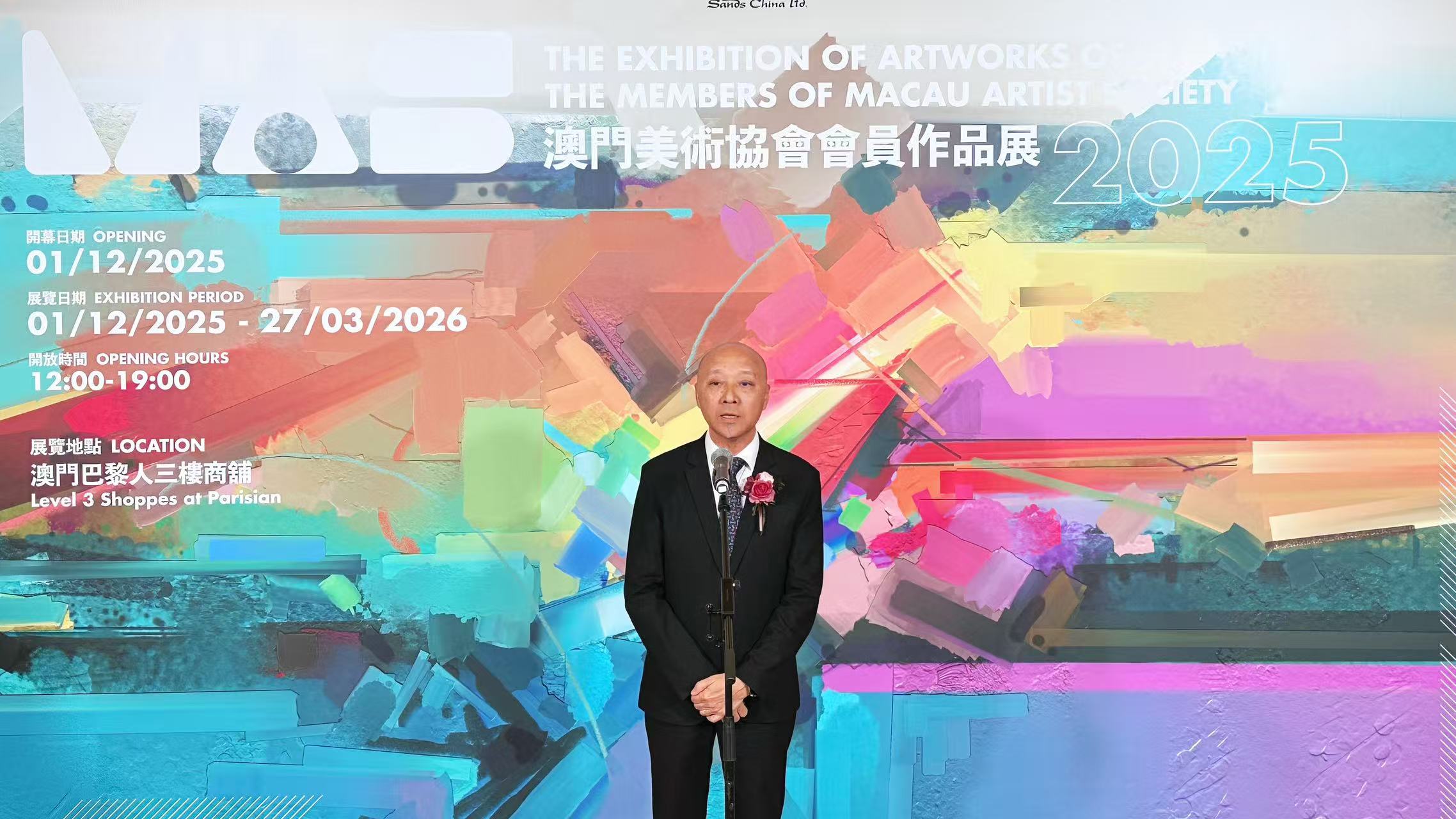 展覽即日起在澳門巴黎人三樓商鋪 3303、3305a、3305b、3305c、3306 及 3320 對外開 放,展期至明年 3 月 27 日,免費入場,誠邀廣大市民及藝術愛好者親臨體驗澳門藝術的多元魅 力,共同見證這場年度藝術盛事的精彩呈現。