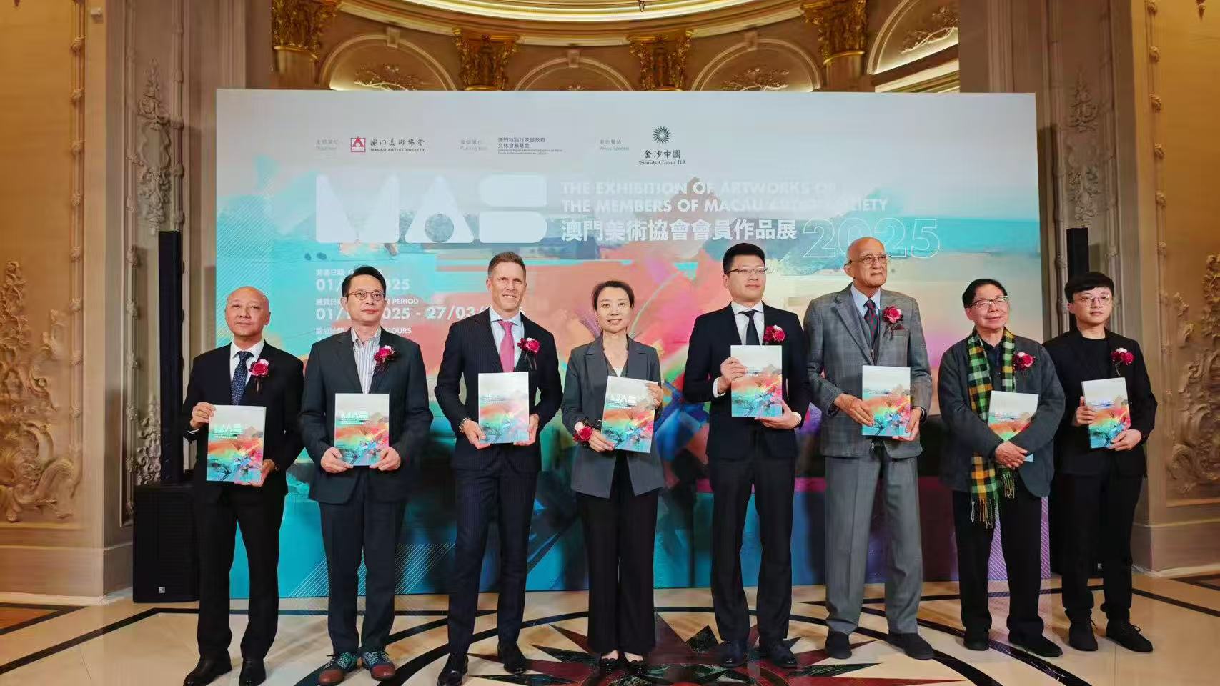 「澳門美術協會會員作品展 2025」開幕典禮,於今天下午六時三十分假澳門巴黎人三樓盛大舉行。剪綵嘉賓包括:中央人民政府駐澳門特別行政區聯絡辦公室宣傳文化部白冰副部長、文 化發展基金行政委員會許鑫源委員、金沙中國博彩營運高級副總裁 高博賢先生、官樂怡基金會 官樂怡主席、香港大學饒宗頤學術館之友李俊鳴會長、澳門美術家協會黎鷹主席、澳門美術協會陸曦會長以及澳門青年美術協會黎小傑會長。