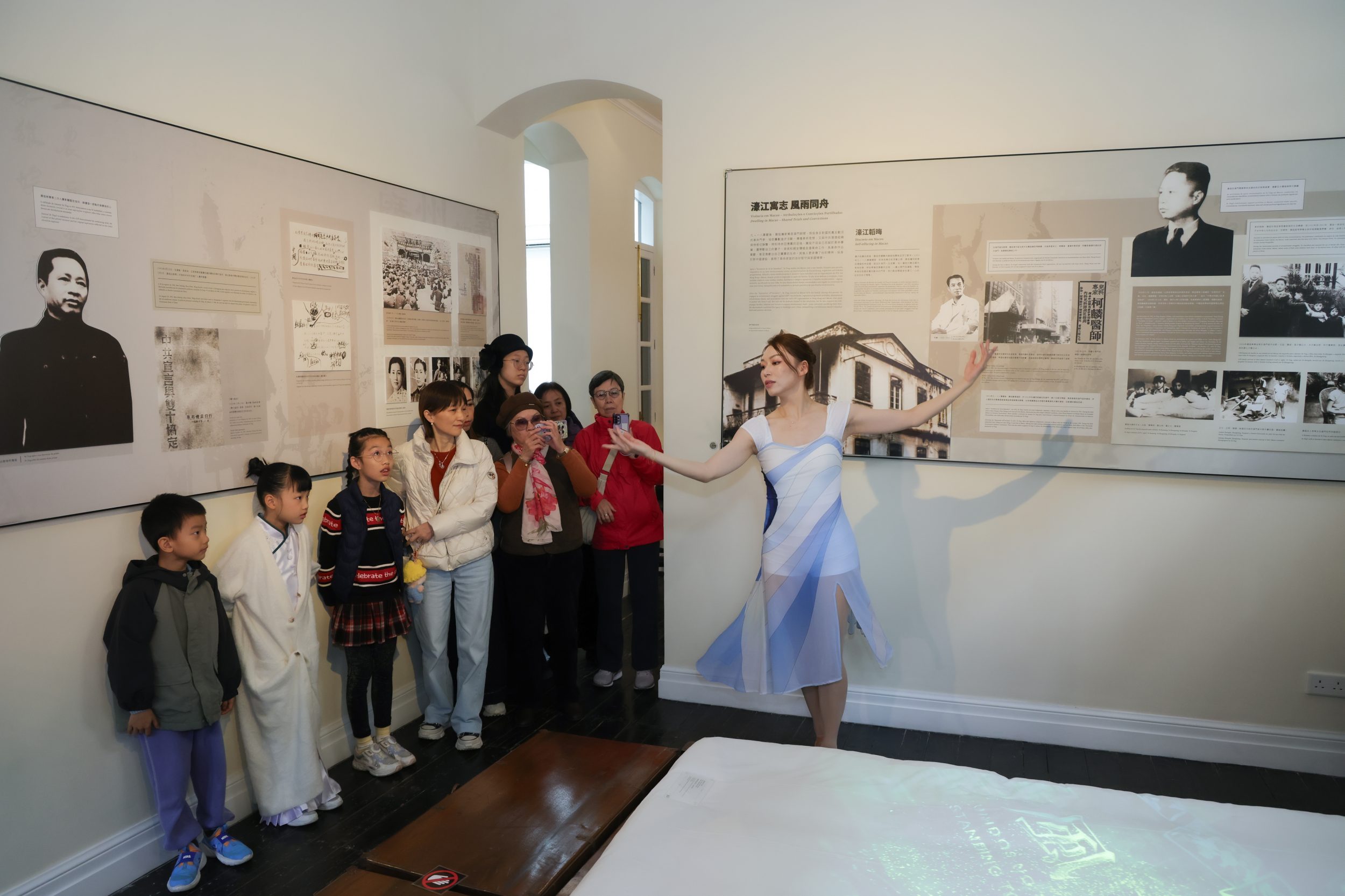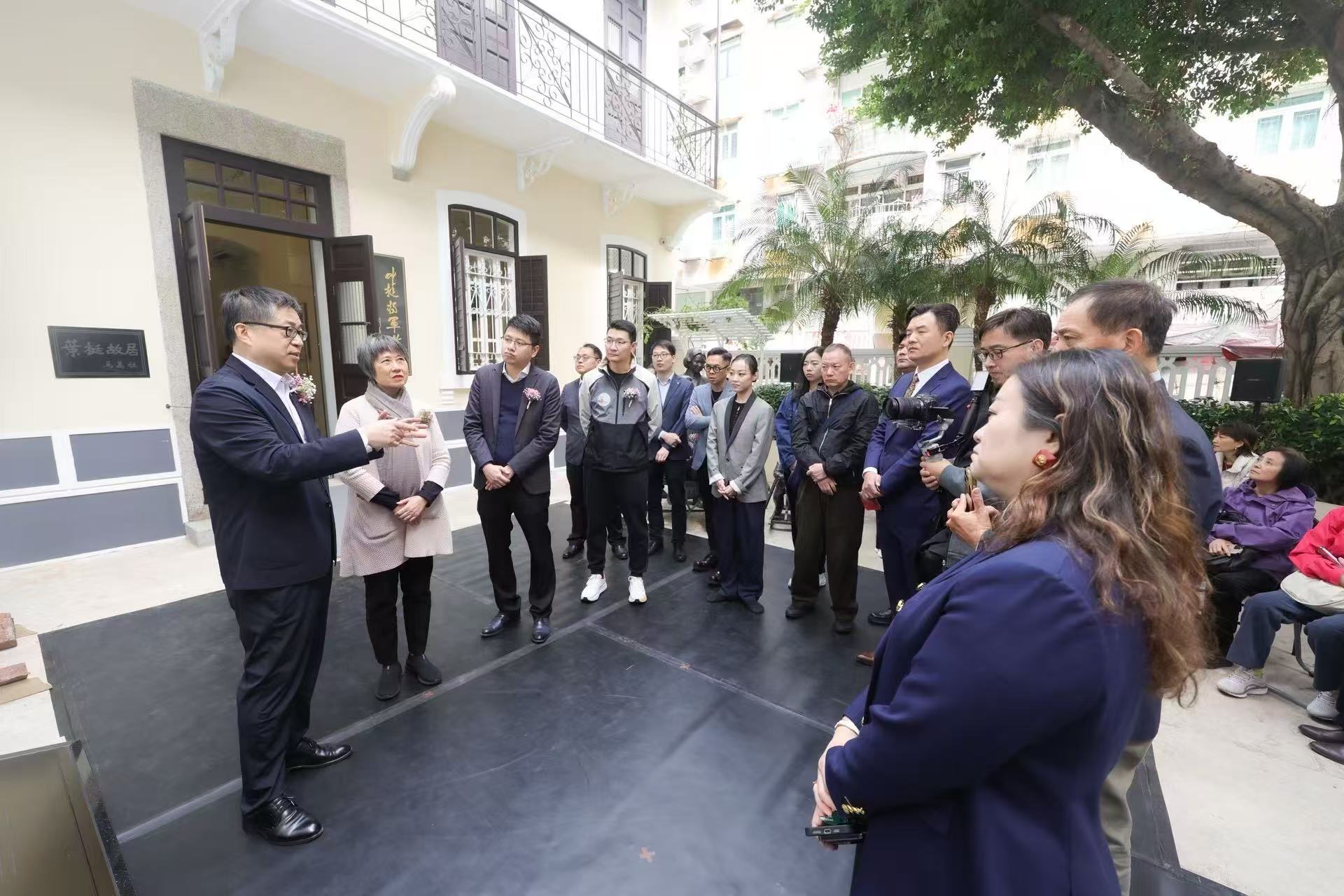 為紀念中國人民抗日戰爭暨世界反法西斯戰爭勝利80周年,澳門現代芭蕾藝術學會於12月14日在葉挺將軍故居呈現沉浸式原創舞劇片段《鐵骨·暗語》,以現代芭蕾的語言,演繹葉挺將軍在澳門歲月中深沉的家國情懷與家庭溫情。中央人民政府駐澳門特別行政區聯絡辦公室、國務院港澳事務辦公室、外交公署及澳門文化界代表蒞臨觀演。