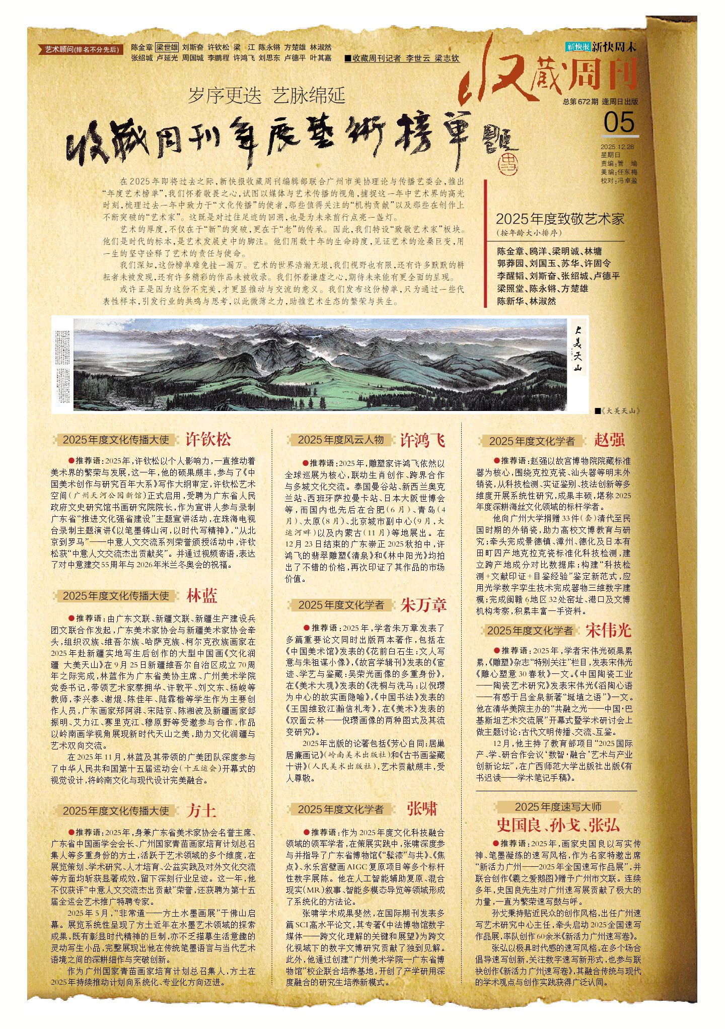 作為華南地區具有廣泛影響力的主流媒體,新快報《收藏週刊》聯合權威藝術機構推出年度藝術榜單,是媒體助力文化傳播、推動藝術發展的重要舉措。未來,隨著榜單影響力的持續擴大,有望成為華南地區乃至全國藝術界的重要年度盛事,為推動藝術傳播與文化傳承貢獻更多力量。