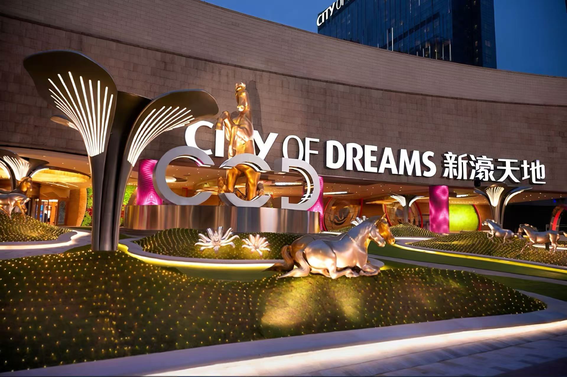 新濠天地主入口同樣煥然一新,7.5 米高的巨型氣派駿馬與亮金色小馬相伴而立,一大一小、一動一靜,既彰顯新年的豪邁氣象,亦流露出合家團圓的溫馨寓意。此處洋溢賀歲的歡慶氛圍,是賓客留下年度溫馨家庭合照的絕佳場景,祝願新一年家業興旺、駿業宏開。