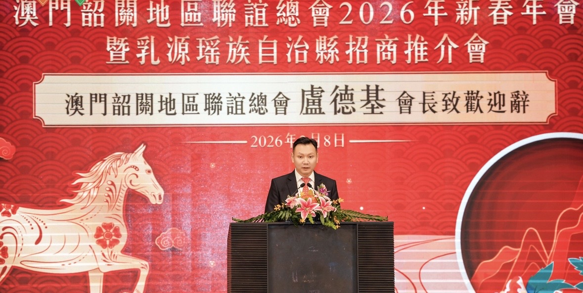 2026年澳門韶關地區聯誼總會新春聯歡晚會暨乳源瑤族自治縣招商推介會在2月8日晚上7点半在萬豪軒舉辦。出席名单嘉賓有中聯辦協調部三處一級調研員尹小蘭女士,韶關市政協主席胡海運,韶關市委常委、統戰部部長高冬瑞,廣東省廣府人珠璣巷後裔海外聯誼會會長黎靜,韶關市政協副主席王德雄,原佛山大學黨委書記曾崢,韶關學院副校長郭會時,全國人大代表、澳門立法會議員何敬麟,澳門特別行政區行政會委員陳家良,立法議員謝誓宏、柳智毅、李居仁,教育及青年發展局學生廳廳長陳旭偉;澳門韶關地區聯誼會創會會長盧道平,廣東省政協委員、會長盧德基,名榮會長潘樂祺,理事長歐嘉偉,韶關市政协、市委统战部、市商务局、市文广旅体局、市投资促进局、团市委、市侨联及韶關十个縣區相关領導、各分會會長、友好社團會長及各界代表等。