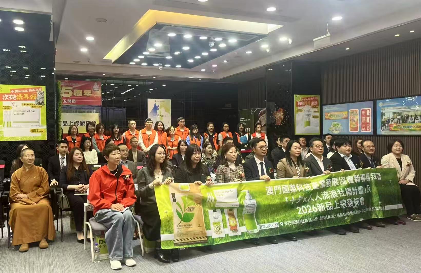 由澳門國際科技產業發展協會協辦,粵澳國際產業融合發展青創基地主辦,博維智慧科技有限公司及上澳創新資訊科技有限公司支持,澳門寵物紀元有限公司及人人流浪狗澳門義工團聯合承辦的科產協新春團拜暨「十夕 × 人人流浪『社福計劃』及 2026 新品上線發佈會」,於 3 月 12 日下午三時假澳創家共享空間舉行。是次發佈會不僅體現了澳青創十夕品牌從源頭減廢到健康護理的全方位綠色生活理念,也展現了澳門青年環保創新的活力。