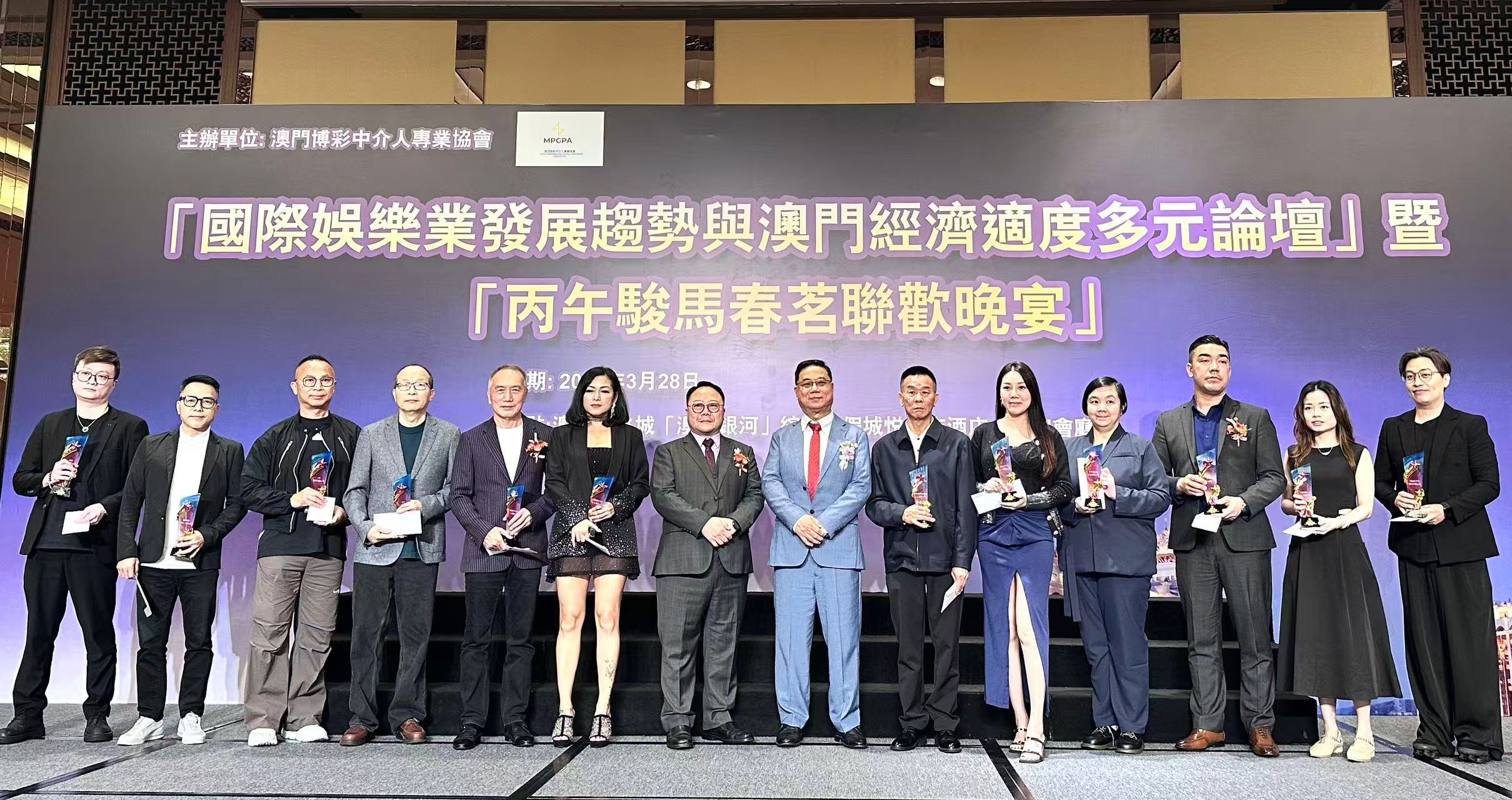 澳門博彩中介人專業協會「國際娛樂業發展趨勢與澳門經濟適度多元論壇」暨丙午駿馬春茗晚宴,於28號晚在悅榕莊宴會廳舉行。下午四點,同場同步舉辦專題圓桌對話,聚焦行業趨勢與澳門經濟多元發展展開研討。