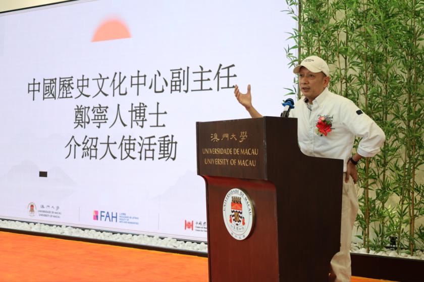 由澳門大學中國歷史文化中心主辦的「第五屆中國文化推廣大使成立儀式暨《蕩氣迴腸》系列活動——愛國主義電影欣賞」,於2026年3月25日在澳門大學崇文樓舉行。澳門天師道文化促進會會長顧羅軍、執行會長施正倫、美高梅區域業務總監蘇文、澳門大學人文學院院長徐杰、中國歷史文化中心主任張彥、副主任鄭寧人、學術研究部主任邵朝陽等嘉賓出席。
