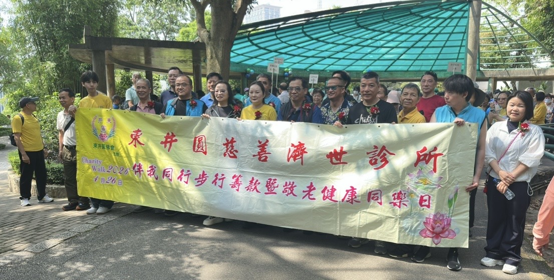 由東井圓佛會主辦的東井圓慈善濟世診所「伴我同行 步行籌款暨慈善敬老午宴」,於2026 年 4 月 26 日舉行。活動分為上午步行籌款及中午敬老午宴兩部分,得到社會各界善長踴躍支持,場面溫馨熱鬧。今年活動共籌得善款超過21 萬澳門元,將全數用於診所的營運開支,特別是用以支持電子病歷系統的持續運作及化,確保基層市民能繼續獲得便捷、有記錄連貫的中醫服務。 活動出席嘉賓有中聯辦協調部二級巡視員布志光先生 ,全國婦聯澳區委員羅彩燕女士,澳門街坊聯合總會副會長陸南德先生 ,梁族聯誼會梁永鋒理事,三鄉藝術文化聯誼會李雲會長 ,活力回春康體會蕭杏珍會長 ,澳門國際機塲巿塲部總監方曉健先生 ,中山西區聯誼會歐展良常務副理事長 ,澳門河源巿同鄉會梁和平會長 ,澳門東源同鄉會曾輝泉會長 ,澳門道教協會賴宏副會,蓮峰廟值理會代表岑根林先生 ,負責任博彩協會宋偉傑會長 ,三灶同鄉會曾華有會長 ,澳門中山小欖同鄉會歐彩蓮會長