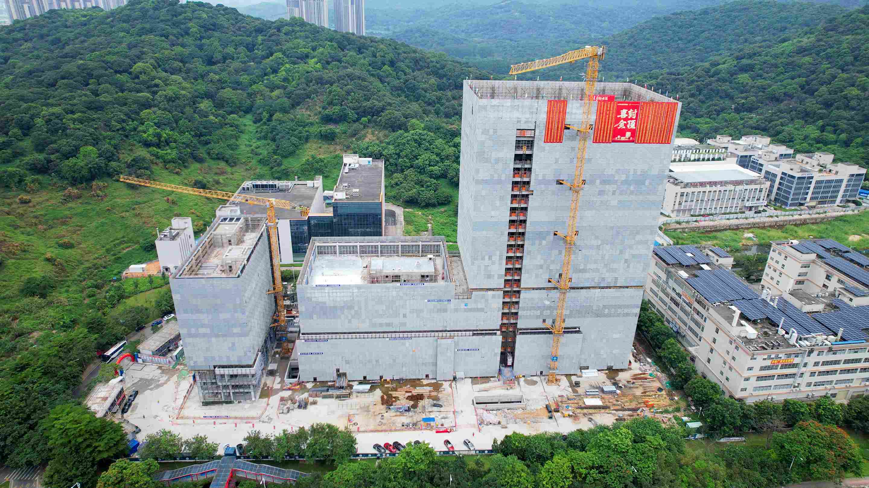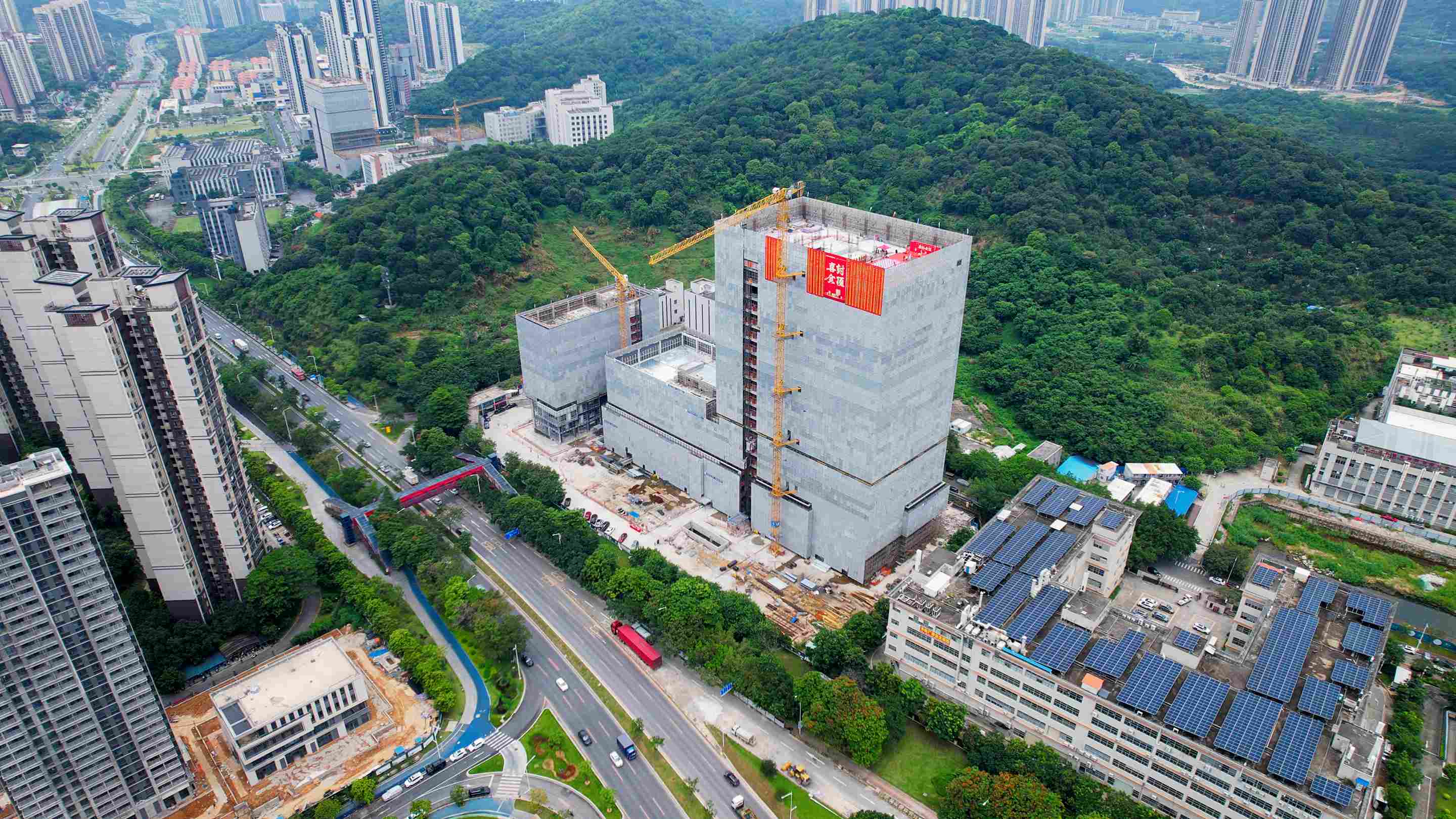 施工過程中,通過每天、每週、每月生產協調會,有效保障各項資源及時到位,及時解決現場實施過程中存在的問題。面對局部肥槽回填空間狹窄,採用原設計土方回填無法確保密實度的問題,中交四航局項目團隊聯合建設單位、設計以及監理開展多輪試驗論證,最終提出採用石粉進行回填,經壓實度檢測,回填品質滿足規範要求。項目建設過程中,各方高效協同,資源配置及時到位並有效解決施工過程的困難,較計畫工期提前7天完成主體結構封頂。