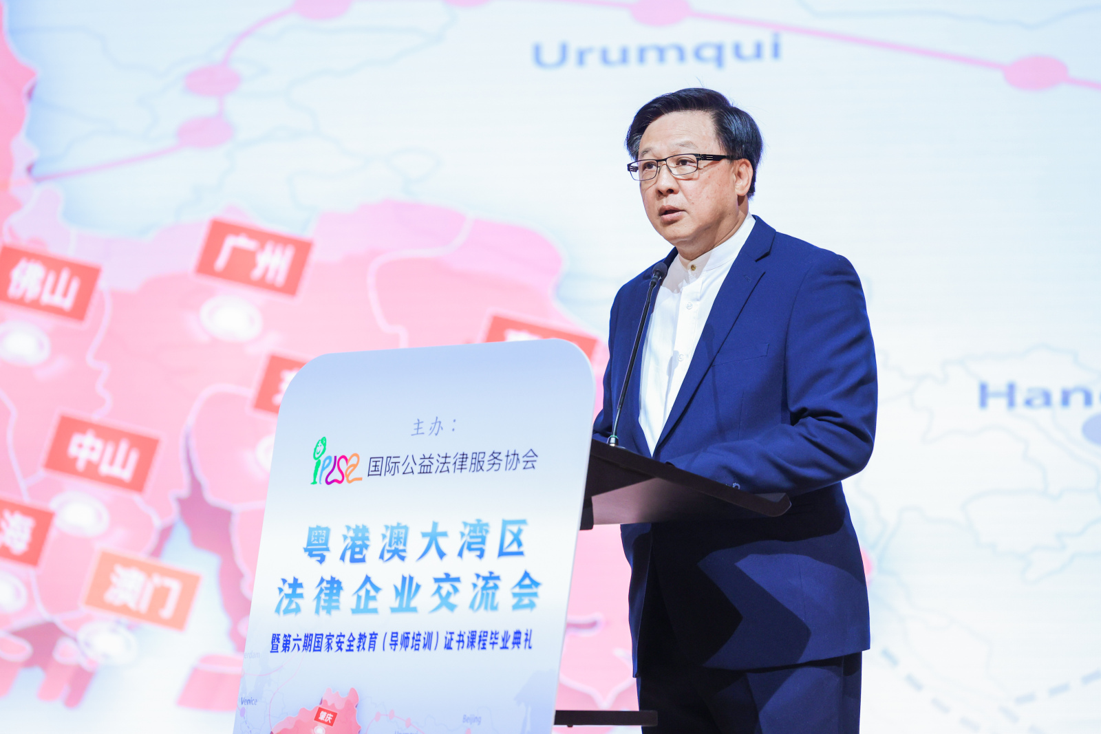 全國政協委員、國際公益法律服務協會主席何君堯律師BBS, JP在致辭中指出,本次交流會正值《粵港澳大灣區發展規劃綱要》發佈6周年、大灣區律師執業試點辦法頒佈5周年的關鍵節點。他強調,IPLSA作為依香港《稅務條例》第88條成立的慈善團體,始終以“培育涉外法律人才、推動公益法律服務”為核心,截至上周已有約618多名港澳律師通過試點辦法獲大灣區執業資質,而2024年黨的二十屆三中全會“加強涉外法治建設”的部署,更讓灣區法律從業者迎來“服務國家戰略、拓展執業空間”的雙重機遇。