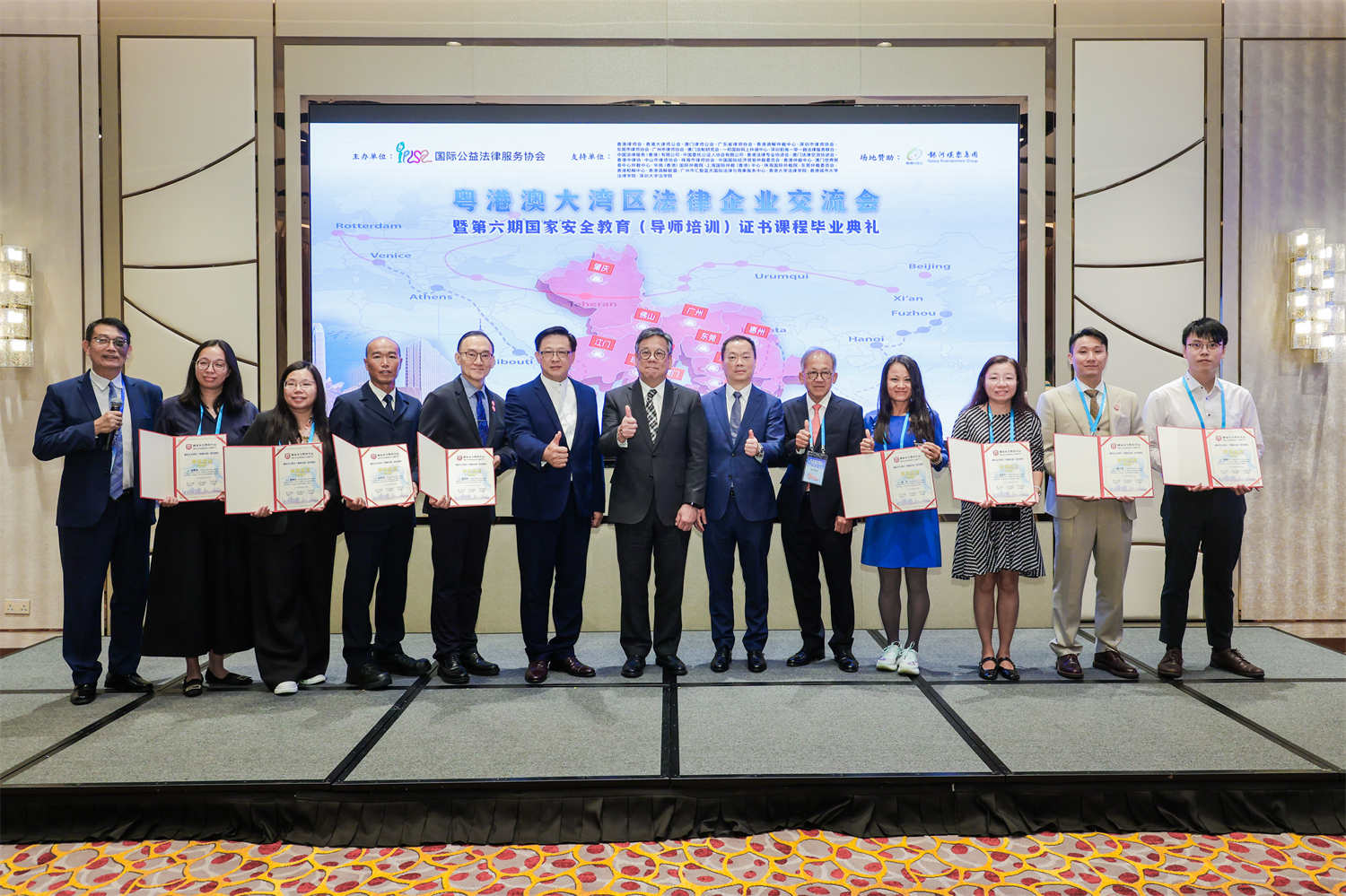 2025年9月16日,“粵港澳大灣區法律企業交流會”在澳門盛大召開,同期舉辦第六期國家安全教育(導師培訓)證書課程畢業典禮。本次活動由國際公益法律服務協會(IPLSA)牽頭,聯合澳門律師公會、香港律師會、香港大律師公會及廣東省律師協會等大灣區核心法律團體共同舉辦,吸引300多名三地法律界代表、企業負責人及青年律師參會,以“法企對接、跨境破題”為核心,為大灣區法律服務融合與企業“走出去”注入新動能。
