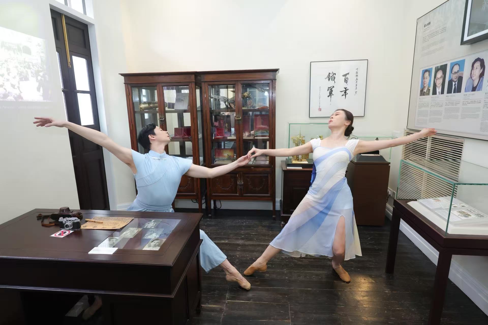 為紀念中國人民抗日戰爭暨世界反法西斯戰爭勝利80周年,澳門現代芭蕾藝術學會於12月14日在葉挺將軍故居呈現沉浸式原創舞劇片段《鐵骨·暗語》,以現代芭蕾的語言,演繹葉挺將軍在澳門歲月中深沉的家國情懷與家庭溫情。中央人民政府駐澳門特別行政區聯絡辦公室、國務院港澳事務辦公室、外交公署及澳門文化界代表蒞臨觀演。