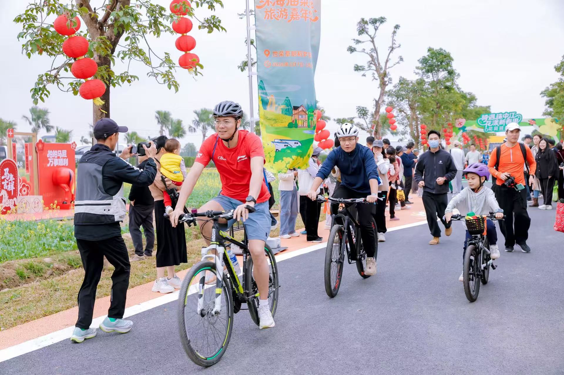 開幕式尾聲,「騎遇珠中江」珠中江花田騎行活動正式啟動,來自粵港澳的100位自行車愛好者穿梭於千畝油菜花田間,成為春日裡的一道風景線。珠中江三地還攜手打造九條特色騎行線路,珠海線路融合自然生態與人文韻味,中山線路串聯花田與水鄉風情,江門線路盡顯碉樓遺產與僑鄉古韻,以車輪為紐帶串聯珠西春日美景。