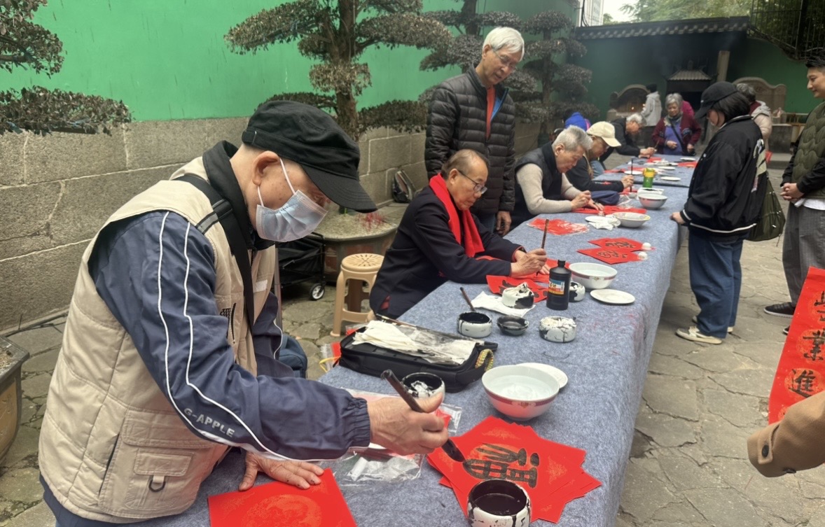由澳門書法院、南國紅豆藝苑及澳門普濟禪院聯合主辦的“駿馬迎新歲 揮春送百福”活動,2月8日下午二時半在普濟禪院門前舉行,邀請多名本澳書畫界人士參與,為街坊書寫揮春、馬字、福字及對聯等,喜迎馬年。