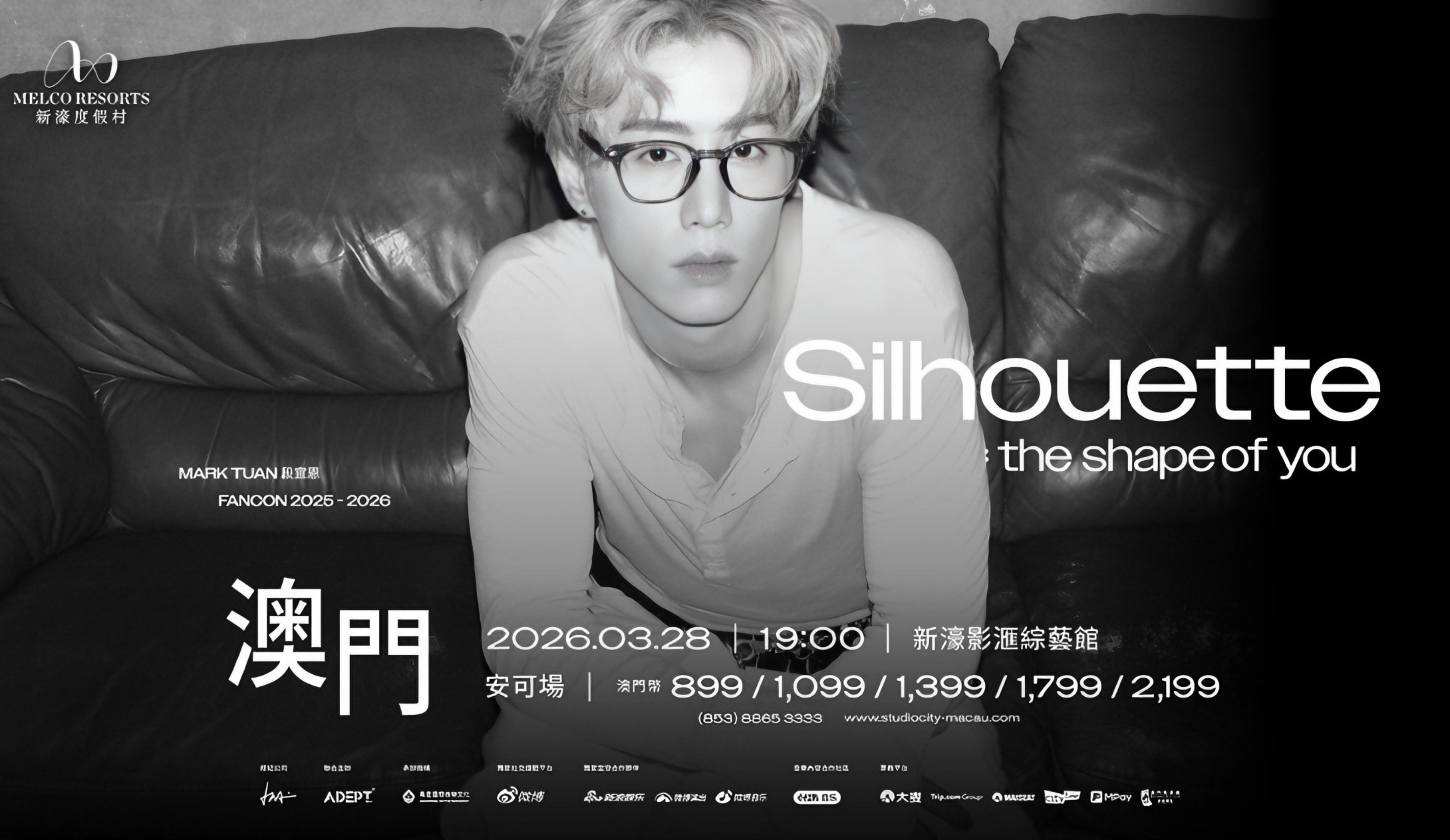 全球人氣男團 GOT7 成員、另類流行創作歌手段宜恩,將於 2026 年 3 月 28 日在澳門新濠影滙綜藝館舉行個人巡迴演唱會 — MARK 段宜恩《 Silhouette: The Shape Of You 》 FANCON 安可場 ,與粉絲一同見證他從偶像到獨立唱作人的音樂成長軌跡。 門票將於2026年2月13日中午12時正式公開發售,票價由澳門幣899至2,199不等。持票觀眾均可獲贈海報一張(隨機簽名)並有機會親身參與 Hi-Bye 歡送環節,為粉絲帶來超越期待的互動體驗。