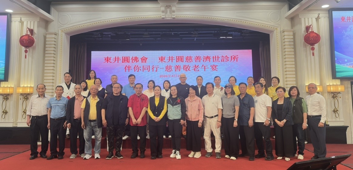 由東井圓佛會主辦的東井圓慈善濟世診所「伴我同行 步行籌款暨慈善敬老午宴」,於2026 年 4 月 26 日舉行。活動分為上午步行籌款及中午敬老午宴兩部分,得到社會各界善長踴躍支持,場面溫馨熱鬧。今年活動共籌得善款超過21 萬澳門元,將全數用於診所的營運開支,特別是用以支持電子病歷系統的持續運作及化,確保基層市民能繼續獲得便捷、有記錄連貫的中醫服務。 活動出席嘉賓有中聯辦協調部二級巡視員布志光先生 ,全國婦聯澳區委員羅彩燕女士,澳門街坊聯合總會副會長陸南德先生 ,梁族聯誼會梁永鋒理事,三鄉藝術文化聯誼會李雲會長 ,活力回春康體會蕭杏珍會長 ,澳門國際機塲巿塲部總監方曉健先生 ,中山西區聯誼會歐展良常務副理事長 ,澳門河源巿同鄉會梁和平會長 ,澳門東源同鄉會曾輝泉會長 ,澳門道教協會賴宏副會,蓮峰廟值理會代表岑根林先生 ,負責任博彩協會宋偉傑會長 ,三灶同鄉會曾華有會長 ,澳門中山小欖同鄉會歐彩蓮會長